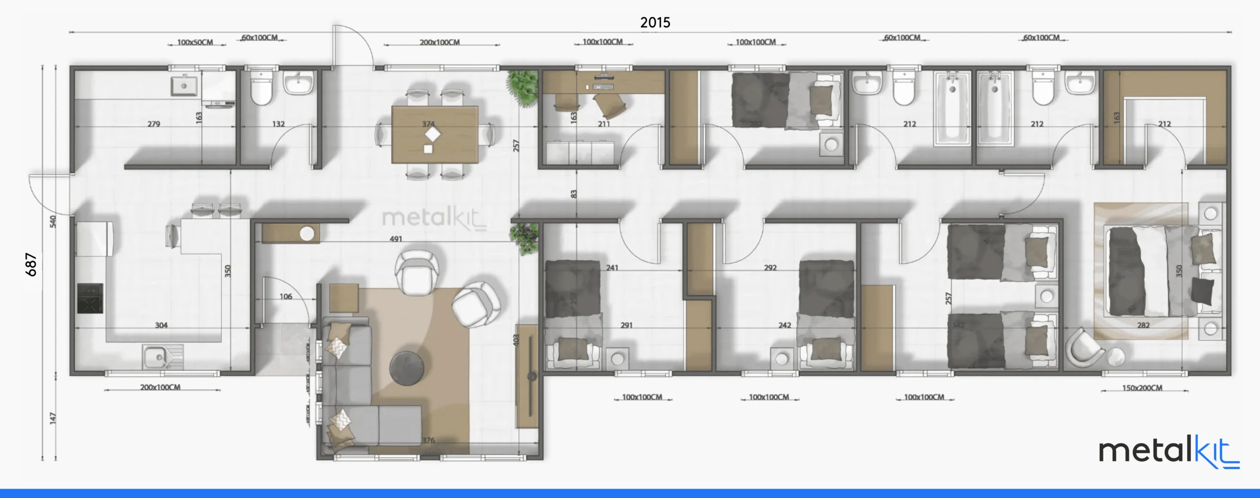 El Modelo C-114 de METALKIT tiene 3 dormitorios y 3 baños.